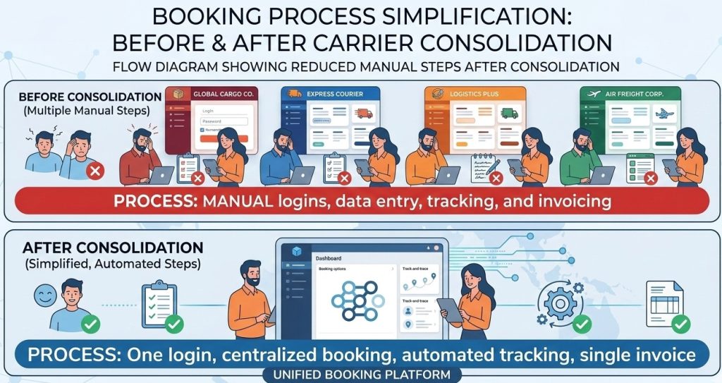 Det betyder, at du samler flere transportører under én booking-platform, så booking og relaterede data kan håndteres mere samlet, og så du får bedre overblik uden at skulle arbejde på tværs af mange separate løsninger.